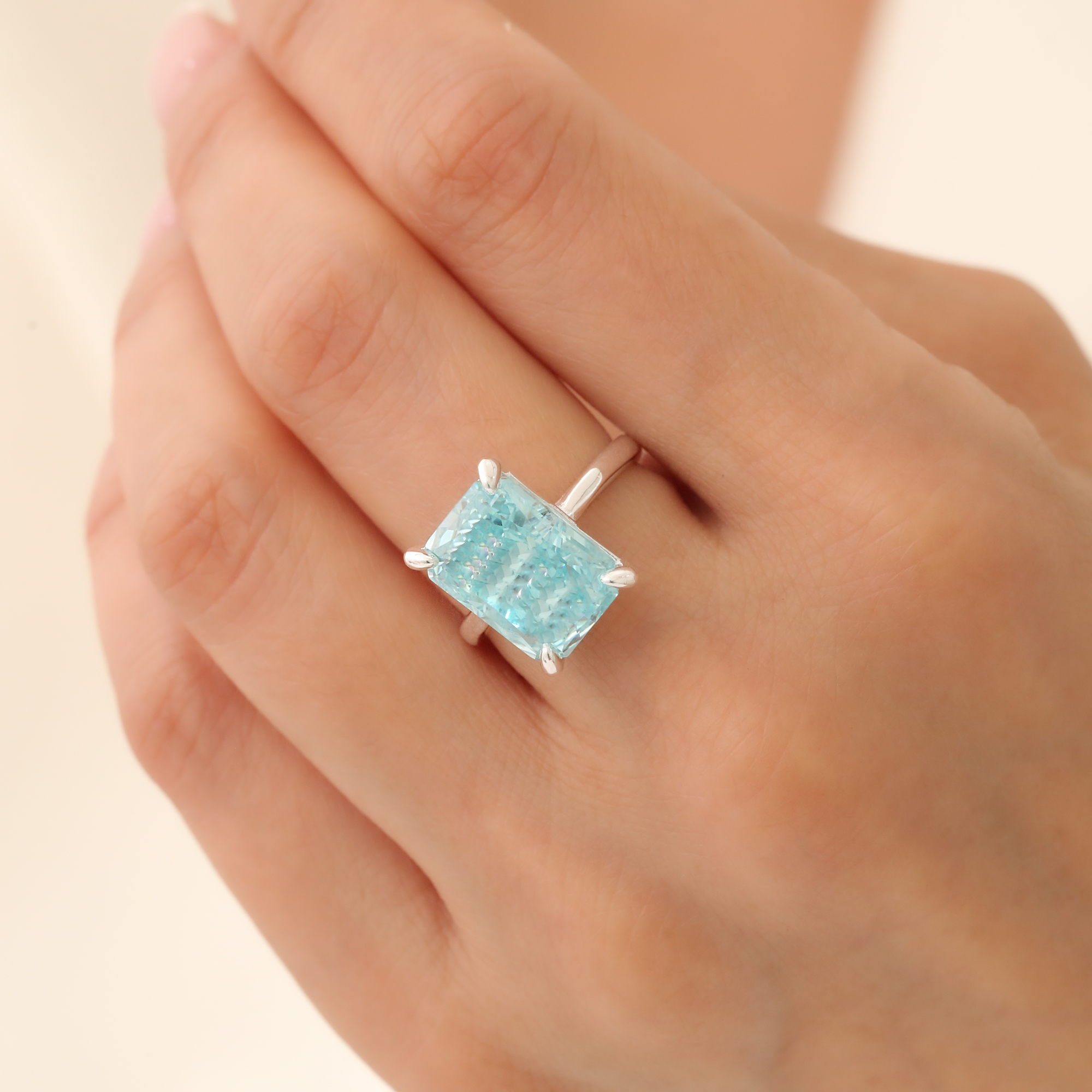 Şık ve modern bir tasarıma sahip olan bu yüzük, hem günlük kullanımda hem de özel davetlerde zarafetinizi tamamlayacak bir aksesuar olarak seçilmiştir. Baget kesim akuamarin taşı, minimal bir şıklık sunarak diğer takılarla kolayca kombinlenebilir. Ayrıca, hem altın hem de gümüş tonlarıyla uyum sağlamakta ve her türlü kıyafetle mükemmel bir bütünlük oluşturmaktadır.
