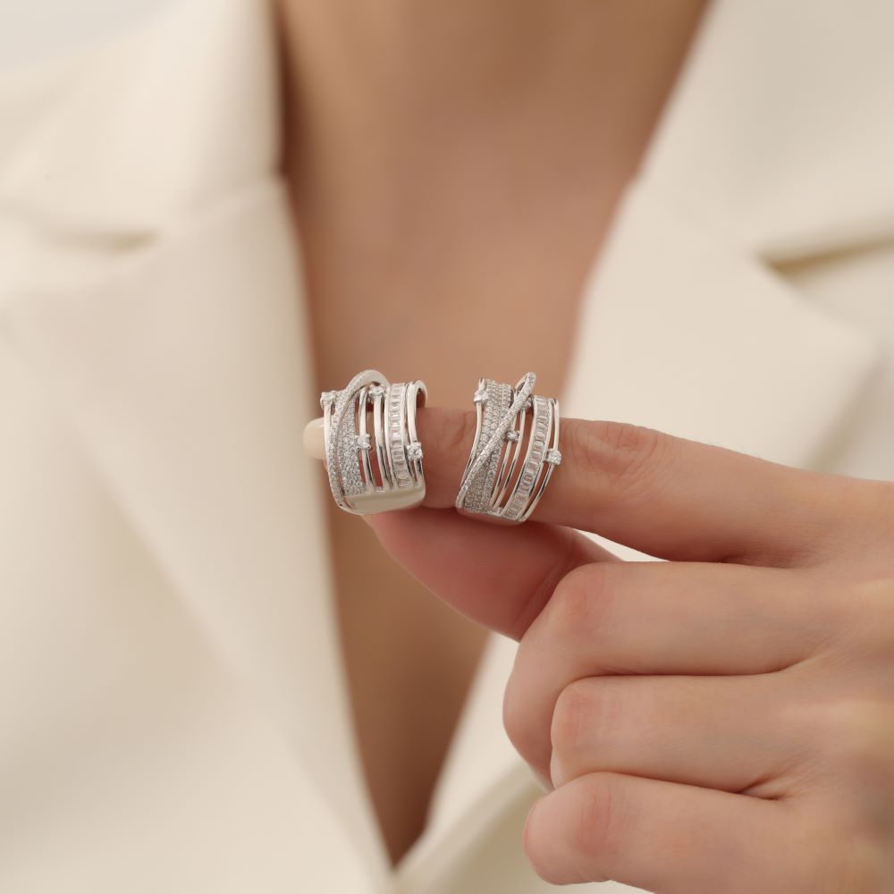 925 Ayar Gümüş İtalyan Sarmal Model Rodyumlu Zirkon Taşlı Yüzük, zarafet ve şıklığı mükemmel bir şekilde birleştiren muhteşem bir takıdır. Bu yüzük, kalitesi ve özel tasarımıyla dikkatleri üzerine çekmektedir. Saf gümüşten üretilmiş olup, yüzük gövdesine eklenen rodyum kaplama sayesinde uzun ömürlü ve parlaklığını koruyan bir yapıya sahiptir.
