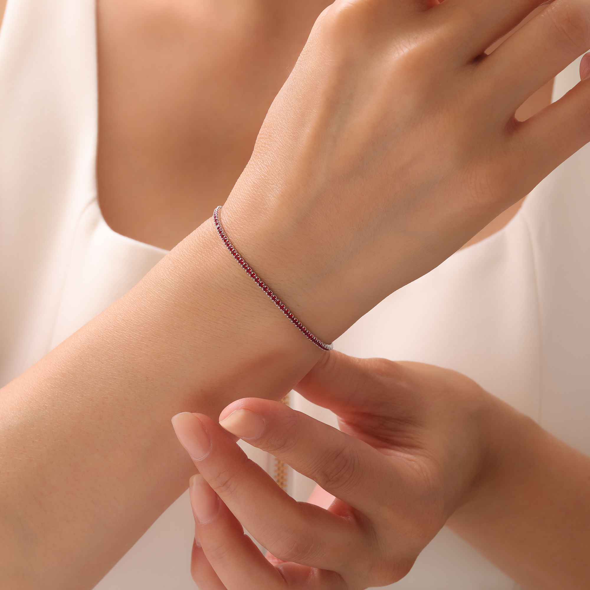 925 Ayar Gümüş Kırmızı Renk Zirkon Taşlı Ayarlanabilir Rodyumlu Suyolu Bileklik, yanında taşıdığı zarafet ve parlaklık ile moda ile olan ilişkinizi yeniden tanımlayacak. Her türlü kombinle uyumlu, kaliteli ve şık bir aksesuar arıyorsanız, bu bileklik tam size göre! Şıklığı ve zarafeti bir arada sunan bu bileklikle, her anınızı özel kılabilirsiniz.