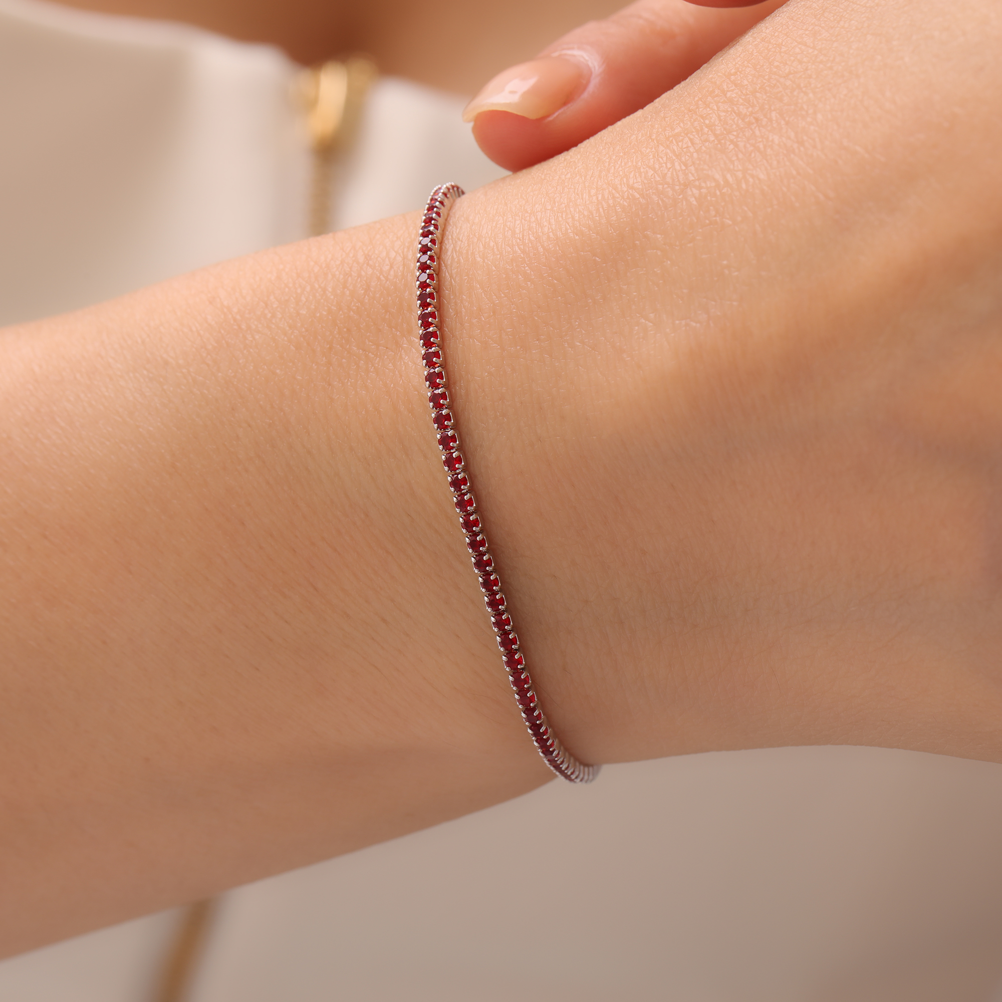 Moda dünyasının zamansız ve zarif parçalarından biri olan 925 Ayar Gümüş Kırmızı Zirkon Taşlı Ayarlanabilir Rodyumlu Suyolu Bileklik, her ortamda dikkat çekmek isteyenler için mükemmel bir seçimdir. Gümüş bilekliğimiz, sadece estetik bir görünüm sunmakla kalmaz, aynı zamanda şıklığı ve kalitesiyle de göz doldurur. Bu özel bileklik, 925 ayar gümüşten üretilmiş olup, içeriğindeki safir zirkon taşları ile göz alıcı bir parıltı elde etmiştir.