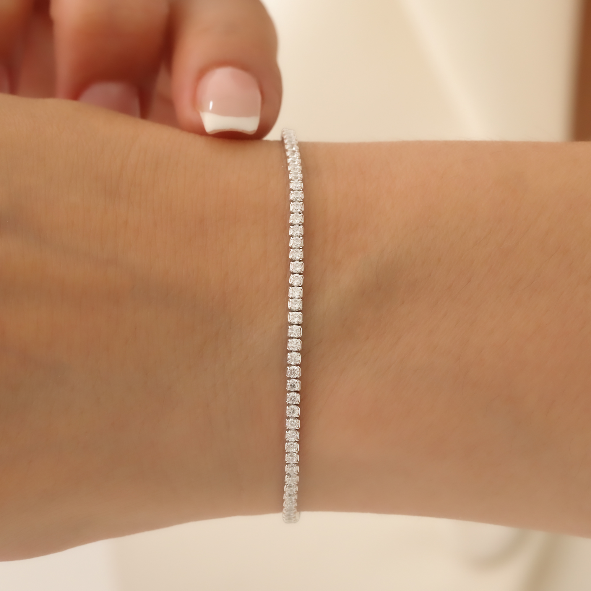 Bileklik, yüksek kaliteli 925 ayar gümüşten üretilmiştir. Gümüş, dayanıklı yapısıyla yıllarca kullanılabilirken, zarif ve modern görünümüyle de her tarzı tamamlar. Ayrıca, bileklik üzerindeki zirkon taşlar, incelikle işlenmiş ve ışıltılarıyla bileklerinizi süslemek için özel olarak seçilmiştir. Rodyum kaplama, bilekliğin hem parlaklığını artırır hem de oksitlenmeye karşı koruma sağlar; böylece uzun süre ilk günkü gibi kalır.
