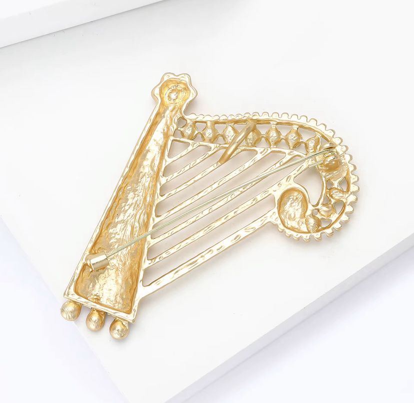 Altın Renk Zirkon Taşlı Müzik Arp Broş