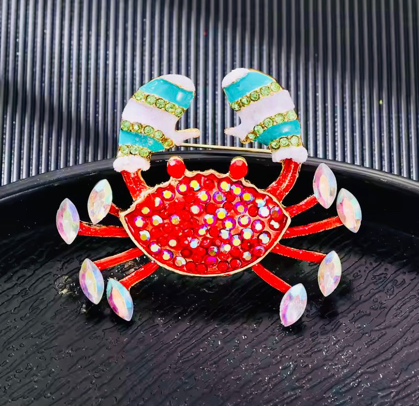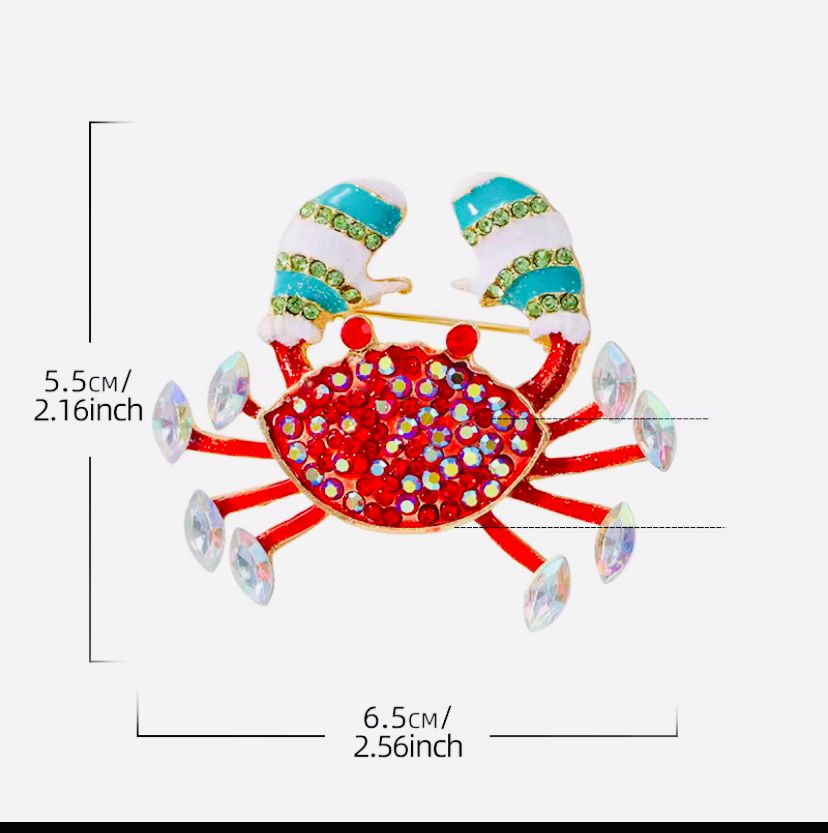 Bu broş, mineli detayları ve pırıltılı zirkon taşları ile dikkat çekiyor. Yengeç figürü, doğanın zarafetini yansıtırken, kullanılan renkler ile hem enerjik hem de şık bir görünüm kazandırmaktadır. Altın renkli metal yapısı, elegan bir hava yaratırken, her türlü kıyafetle uyum sağlar.