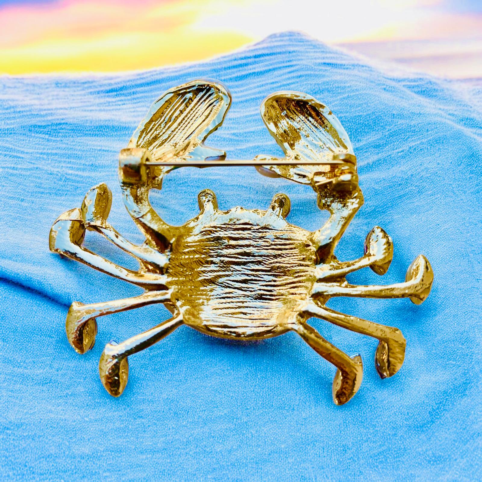 Altın Renk Zirkon Taşlı Renkli Mineli Tasarım Yengeç Broş