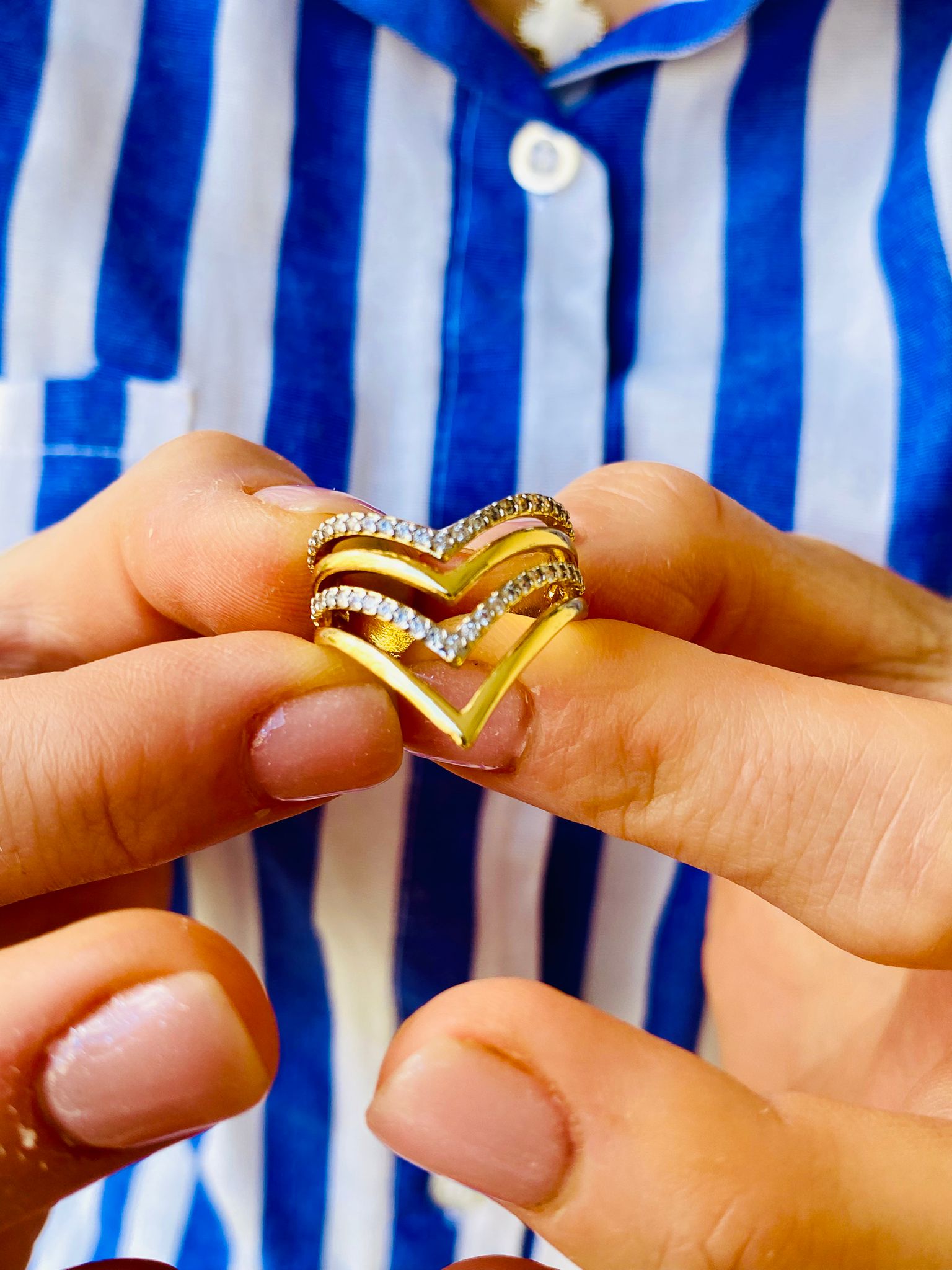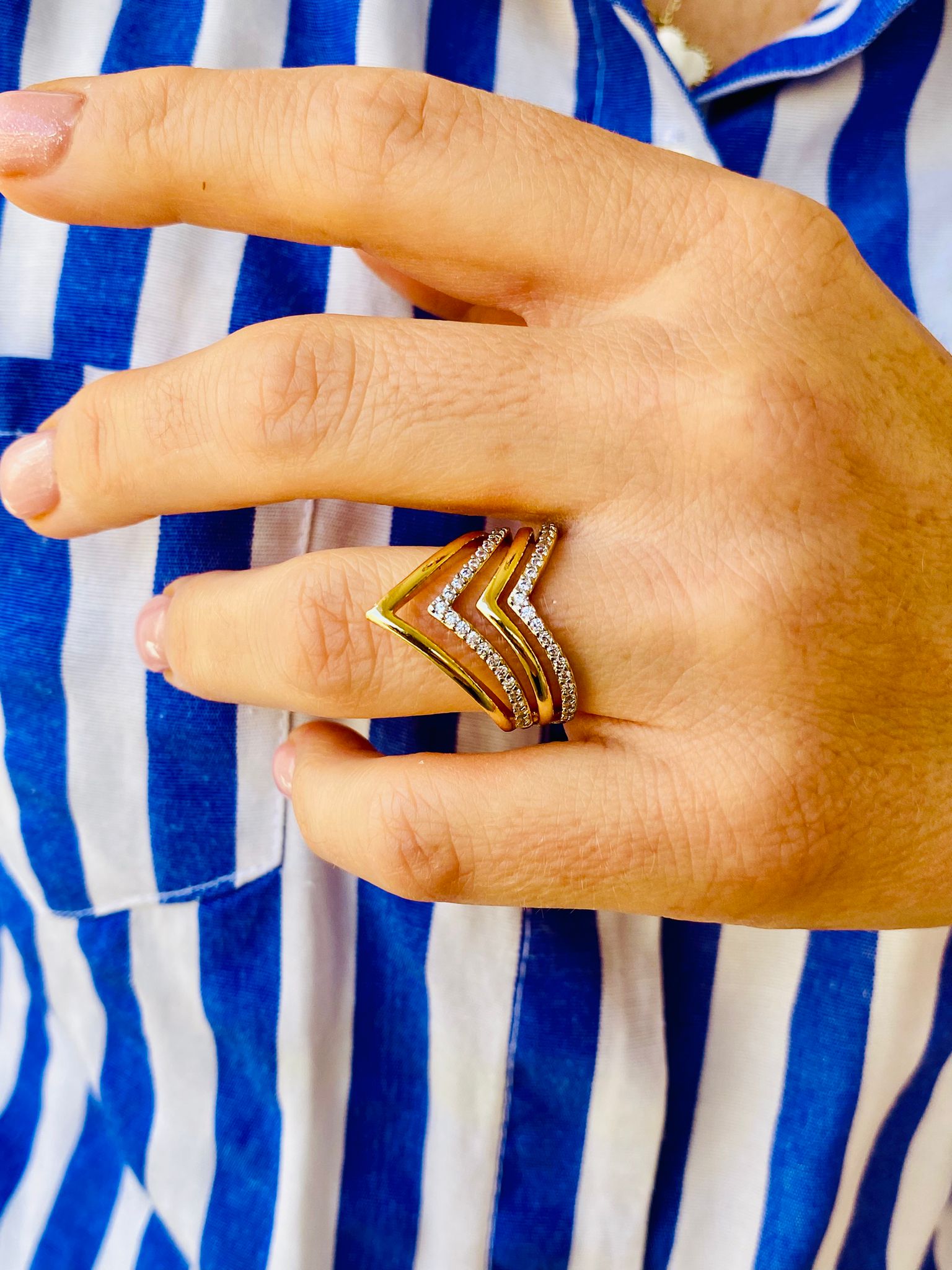 Altın Renk Zirkon Taşlı V Model Tasarım Ayarlanabilir Yüzük