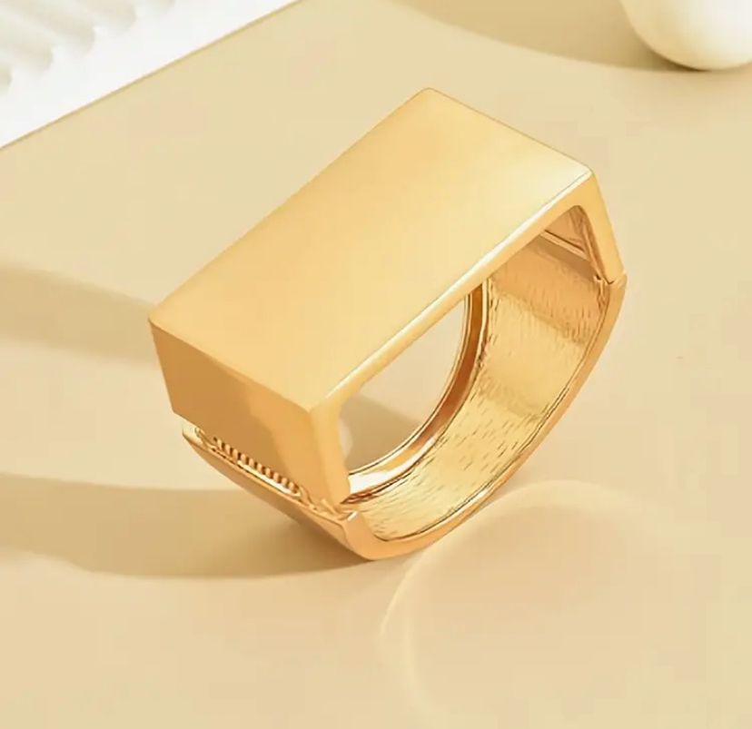 Dikdörtgen Kesim Geniş Model Altın Kaplamalı Çelik Kelepçe Bilezik