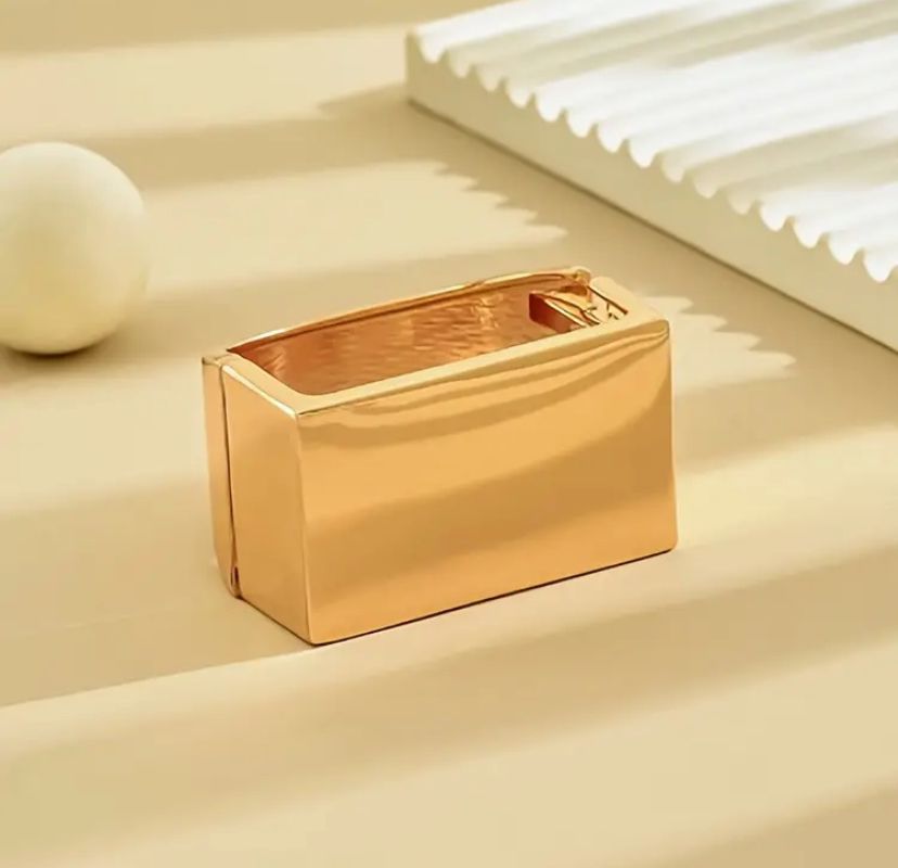Dikdörtgen Kesim Geniş Model Altın Kaplamalı Çelik Kelepçe Bilezik, stilinizi yansıtan, kaliteli ve uzun ömürlü bir aksesuardır. Her anınızı özel kılmak için tasarlandı. Şimdi sipariş verin ve şıklığın tadını çıkarın!