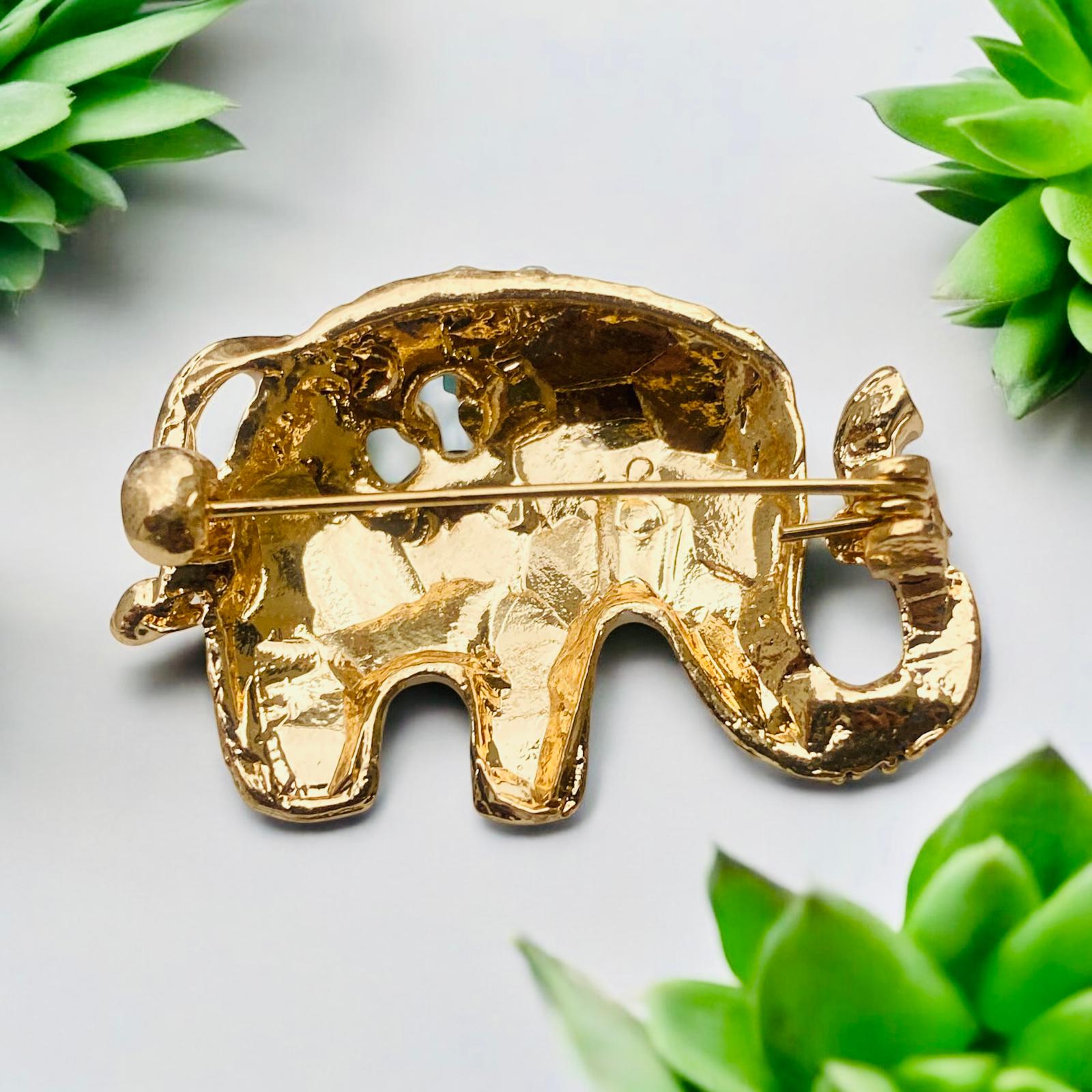Doğaltaşlı Renkli Mineli Altın Renk Tasarım Fil Broş
