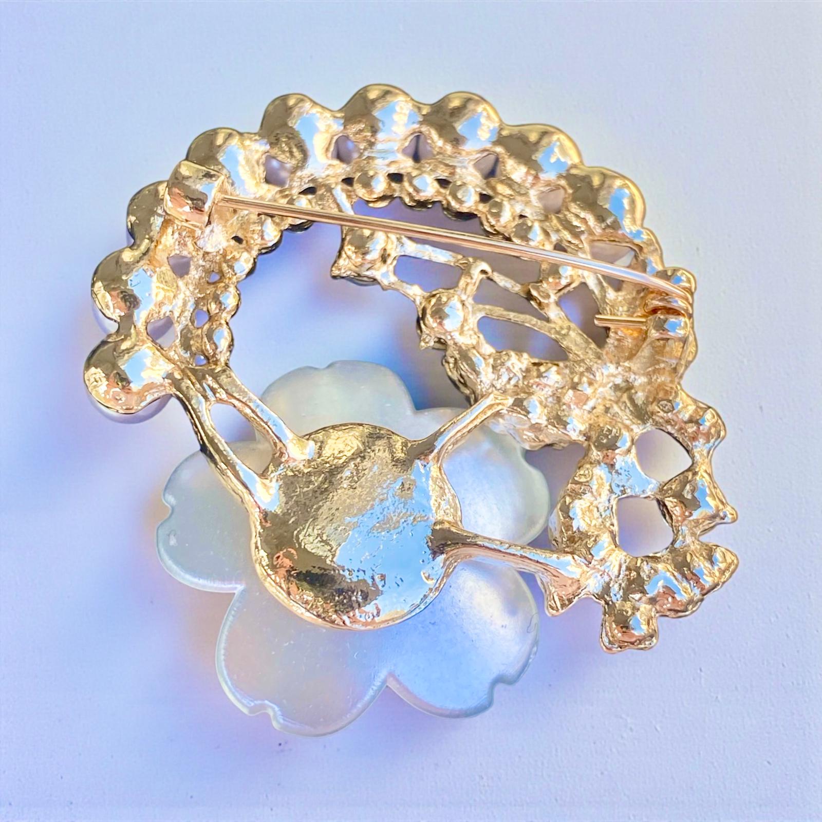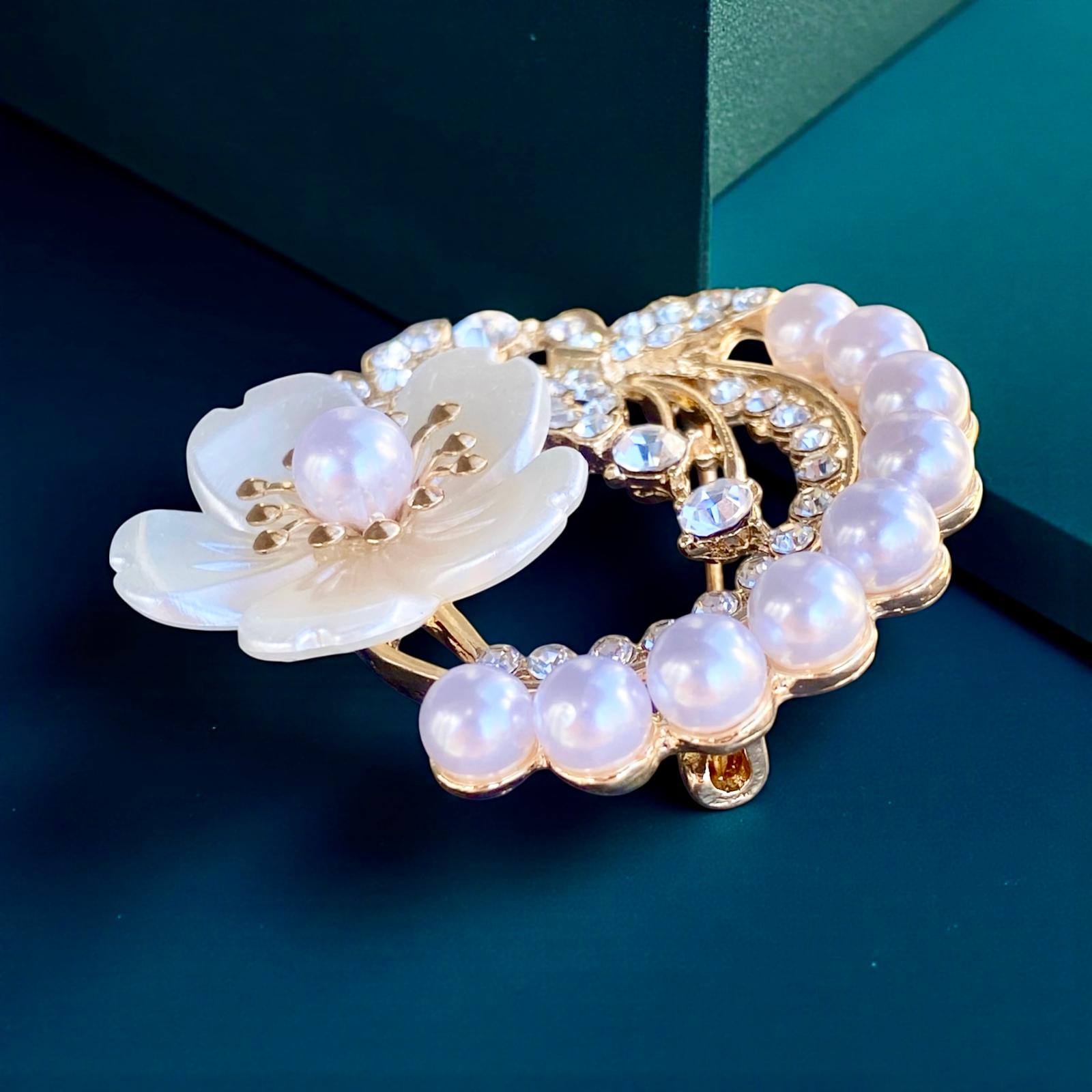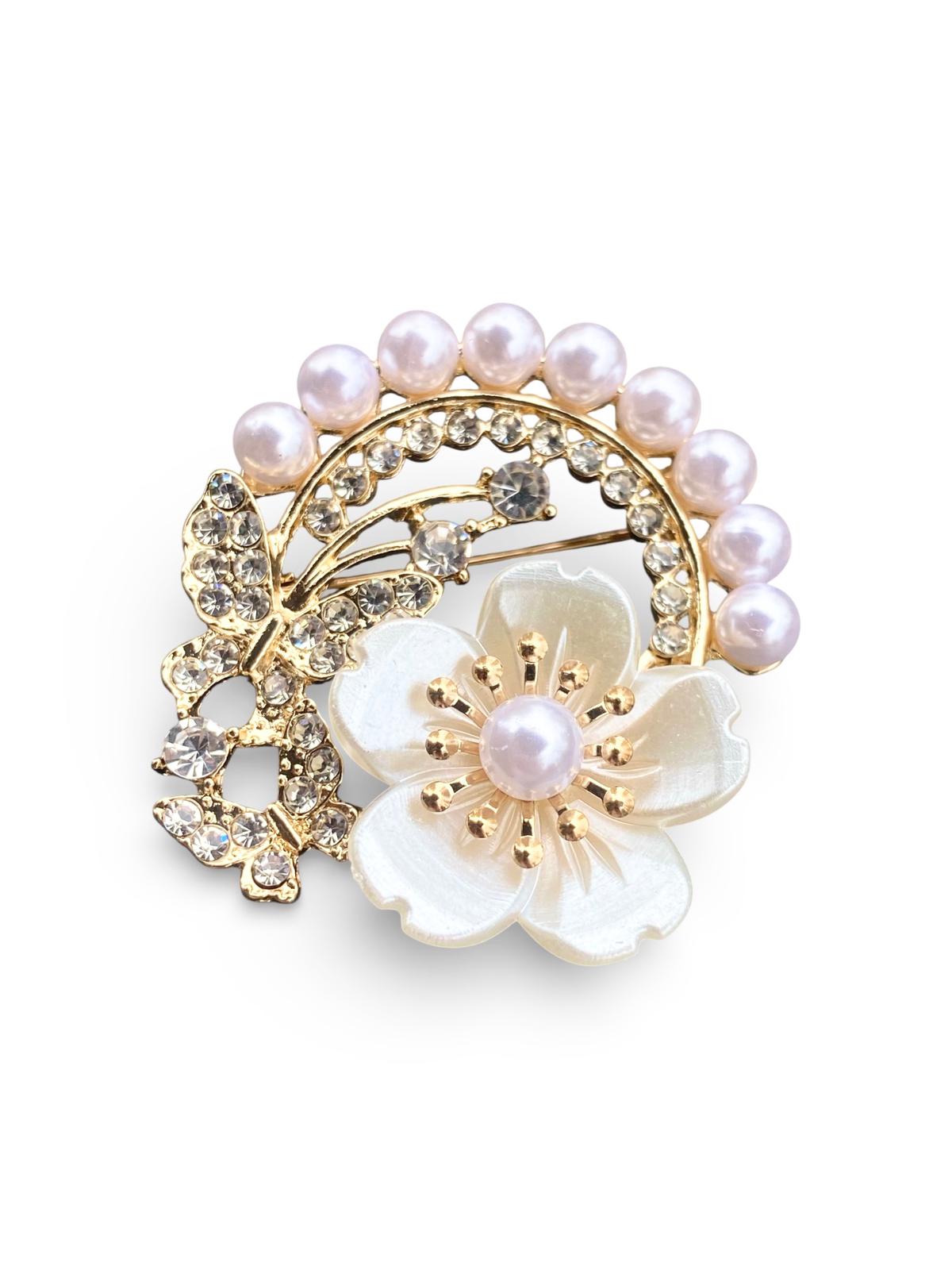 İnci Taşlı Altın Renk Zirkon Taşlı Kelebek Çiçek Broş