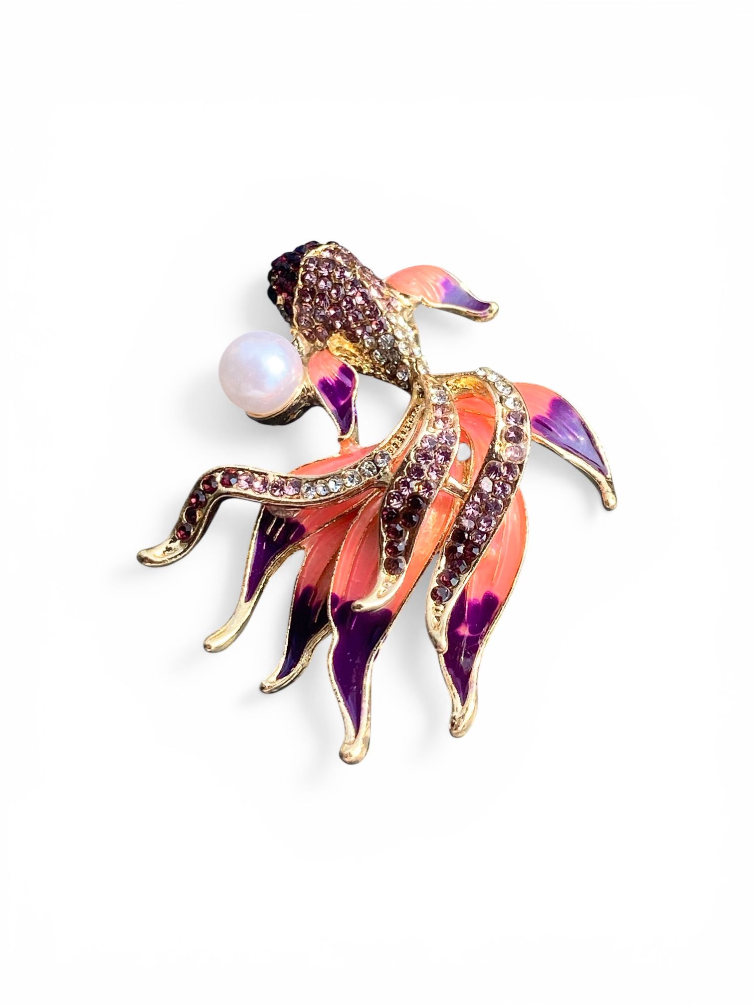 Bros, altın renk kaplamasıyla zarif bir görünüm sunarken, mineli tasarımı sayesinde rengarenk bir hava taşıyor. İnci taşları, kullanıldığı her parçaya lüks bir dokunuş katıyor. Balık figürü, hem deniz temalı aksesuarlar tutkunları için ideal bir seçim oluyor, hem de farklı kombinlerle uyum sağlıyor.