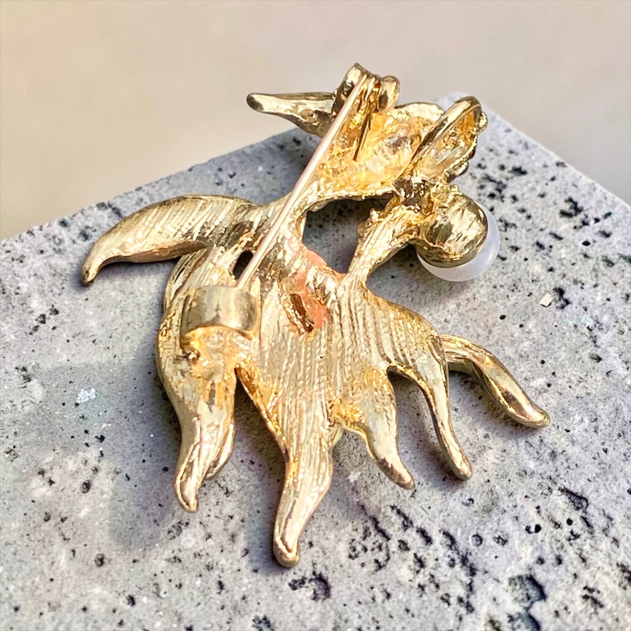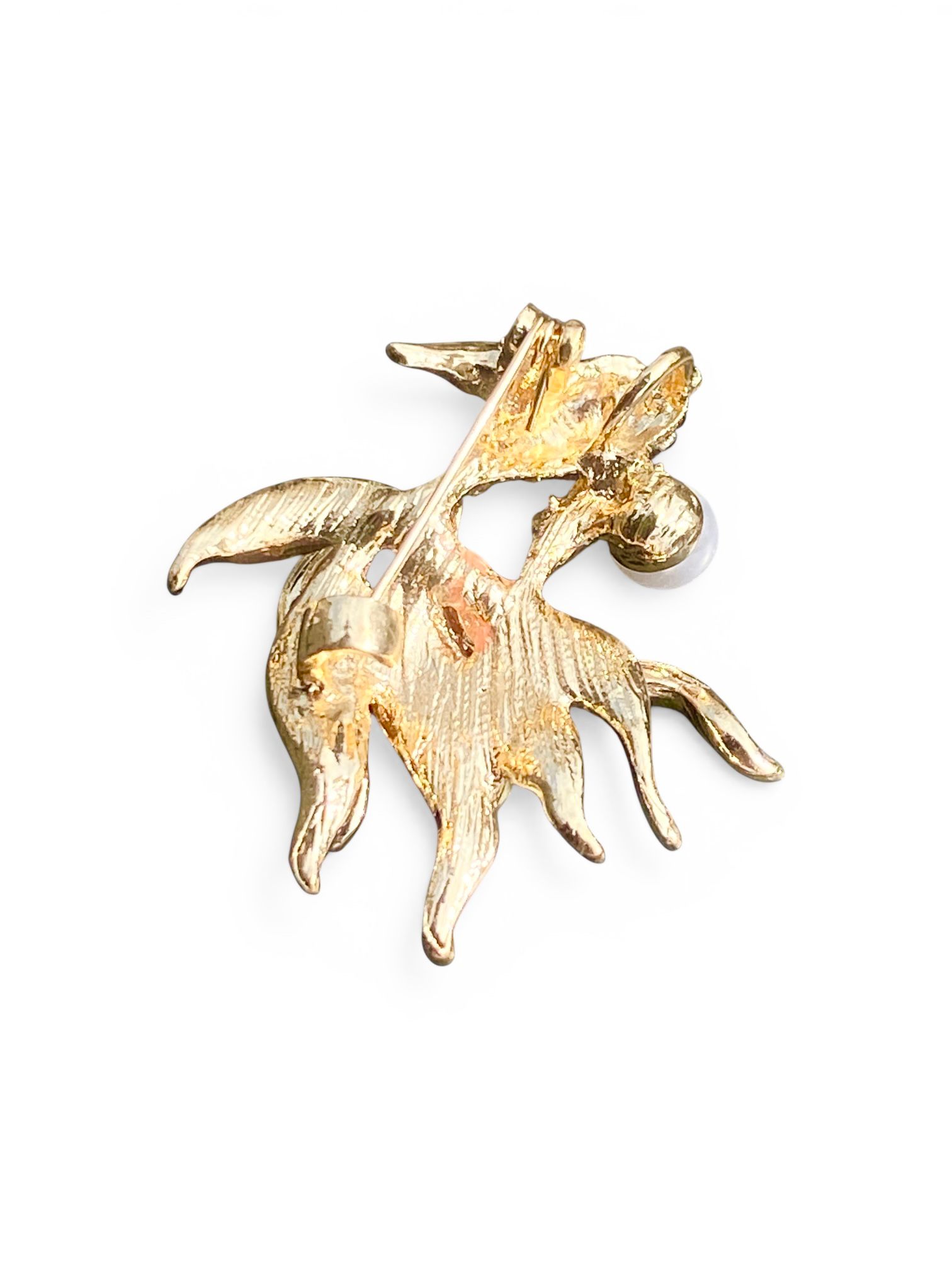 İnci Taşlı Mineli Gold Renk Balık Broş