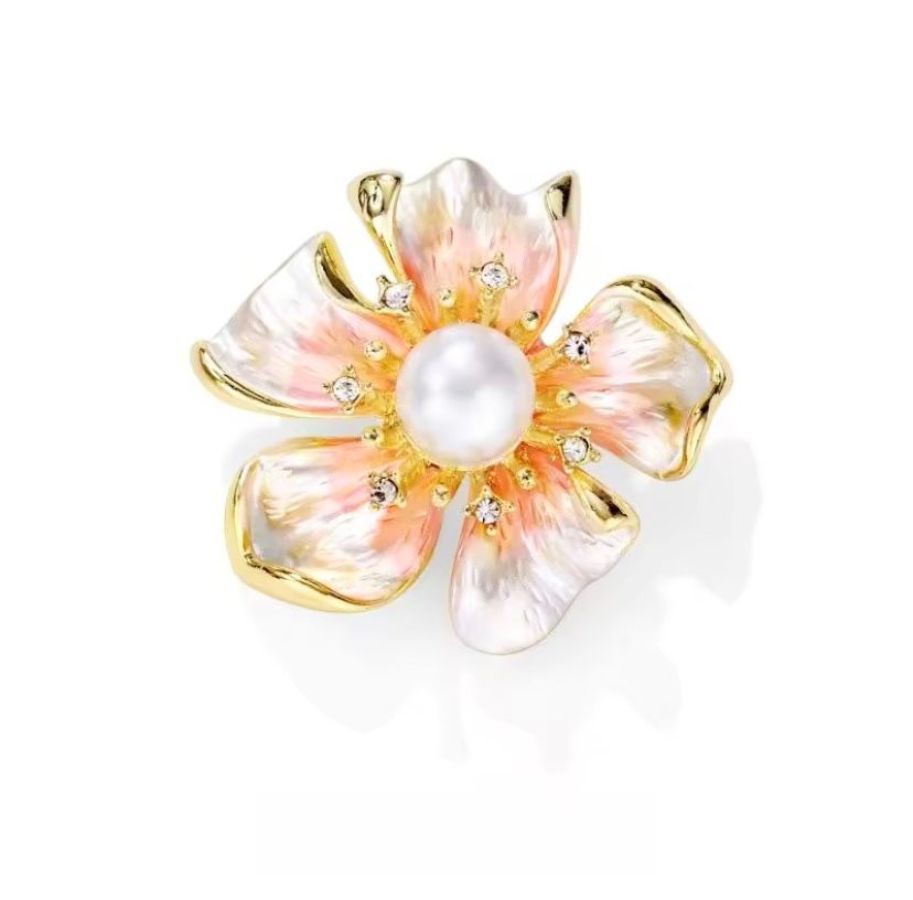 Broş, yüksek kaliteli malzemeler kullanılarak el işçiliği ile üretilmiştir. Zirkon taşları, broşun merkezinde yer alarak mükemmel bir parlaklık ve ışıltı kazandırırken, inci detayı ise ona zarif bir dokunuş ekliyor. Mineli çiçek tasarımı, pastel tonlardaki renkleriyle birlikte hayat buluyor, bu da bu parçayı özellikle bahar ve yaz aylarının vazgeçilmezi kılıyor.