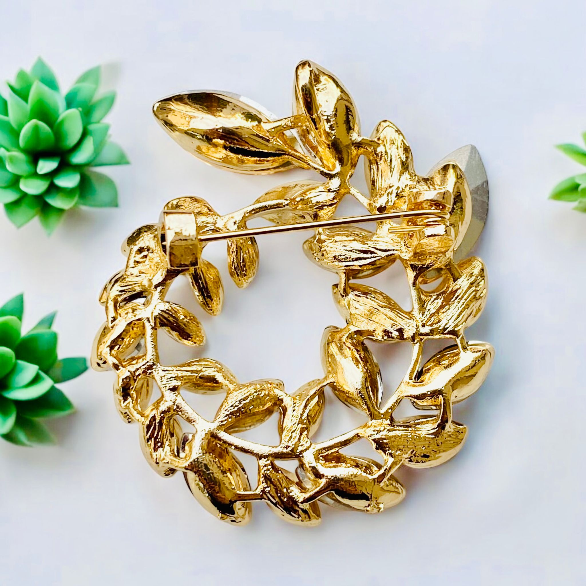 Kristal Taşlı Dal Detaylı Altın Renk Zirkon Taşlı Tasarım Broş
