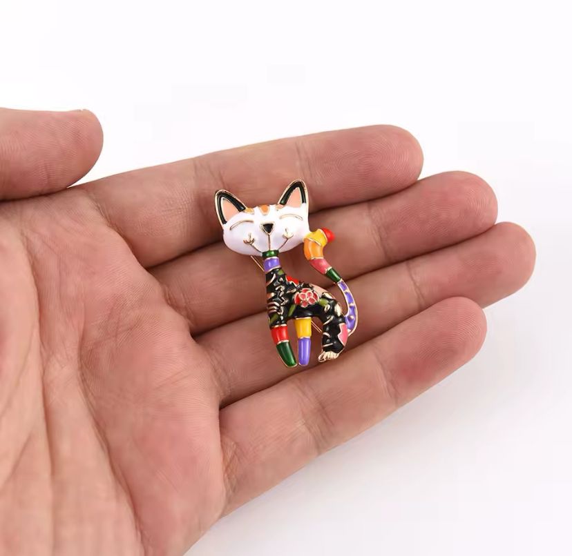 Bu broş, sevimli bir kedi figürü olarak tasarlanmıştır ve çeşitli renklerdeki mineli detayları sayesinde göz alıcı bir görünüm elde eder. Özellikle 2D tarzındaki sevimli kedi imajı, hayvanseverleri ve kedi tutkunlarını kendine hayran bırakacak. Renkli mineler, güneş ışığında parıldayarak kullanıcısına şıklık katarken, broşun genel estetiği de hem eğlenceli hem de modern bir hava taşır.