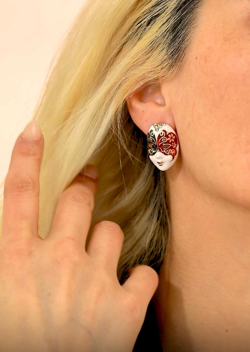 Renkli Mineli Zirkon Taşlı Altın Renk Tiyatro Maskesi Küpe