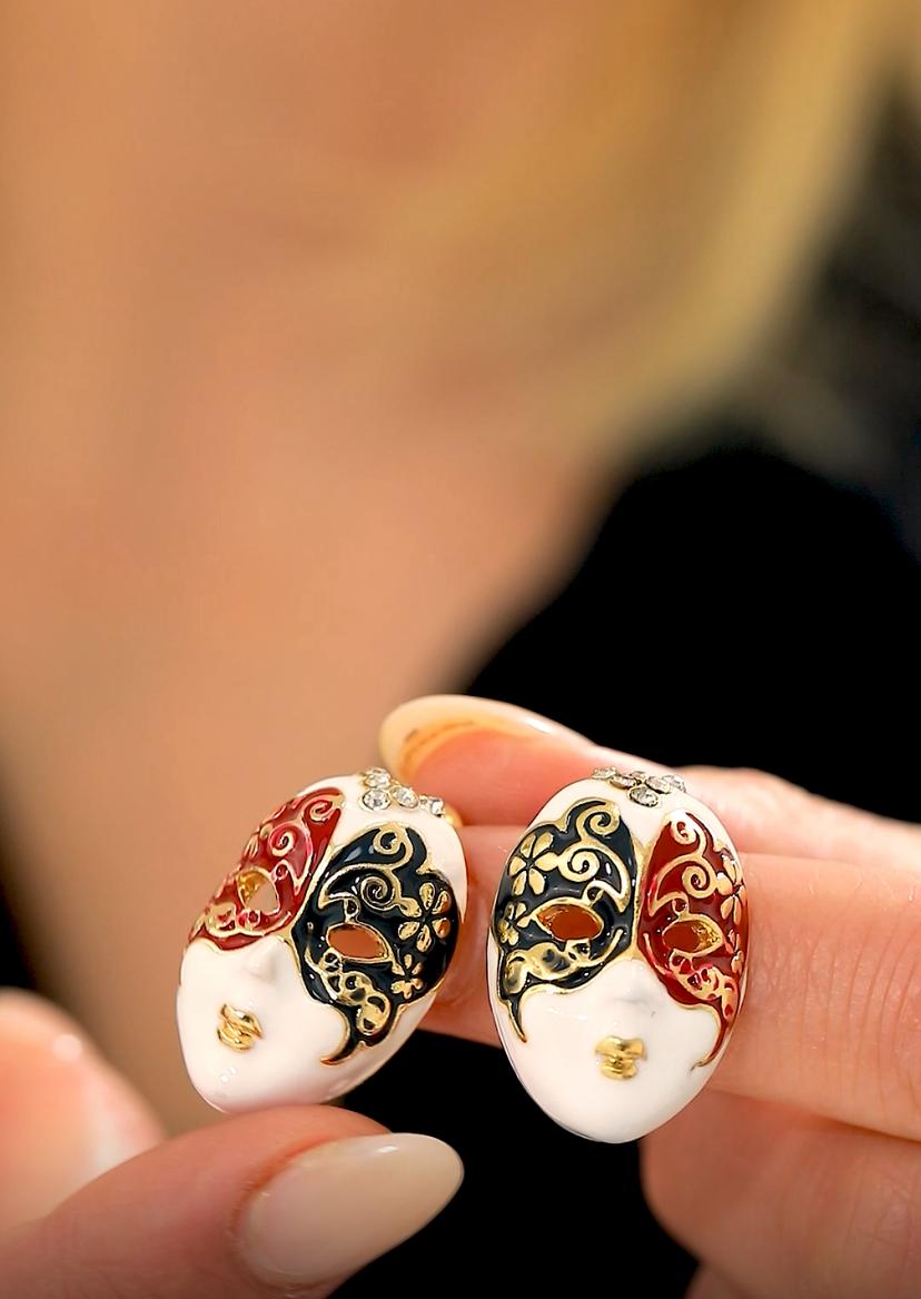 Hayal gücünüzü ve sanat tutkunuzu yansıtan eşsiz bir parça: Renkli Mineli Zirkon Taşlı Altın Renk Tiyatro Maskesi Küpe! Sanatın ve estetiğin buluştuğu bu özel küpe, zarafeti ve şıklığıyla göz dolduruyor.