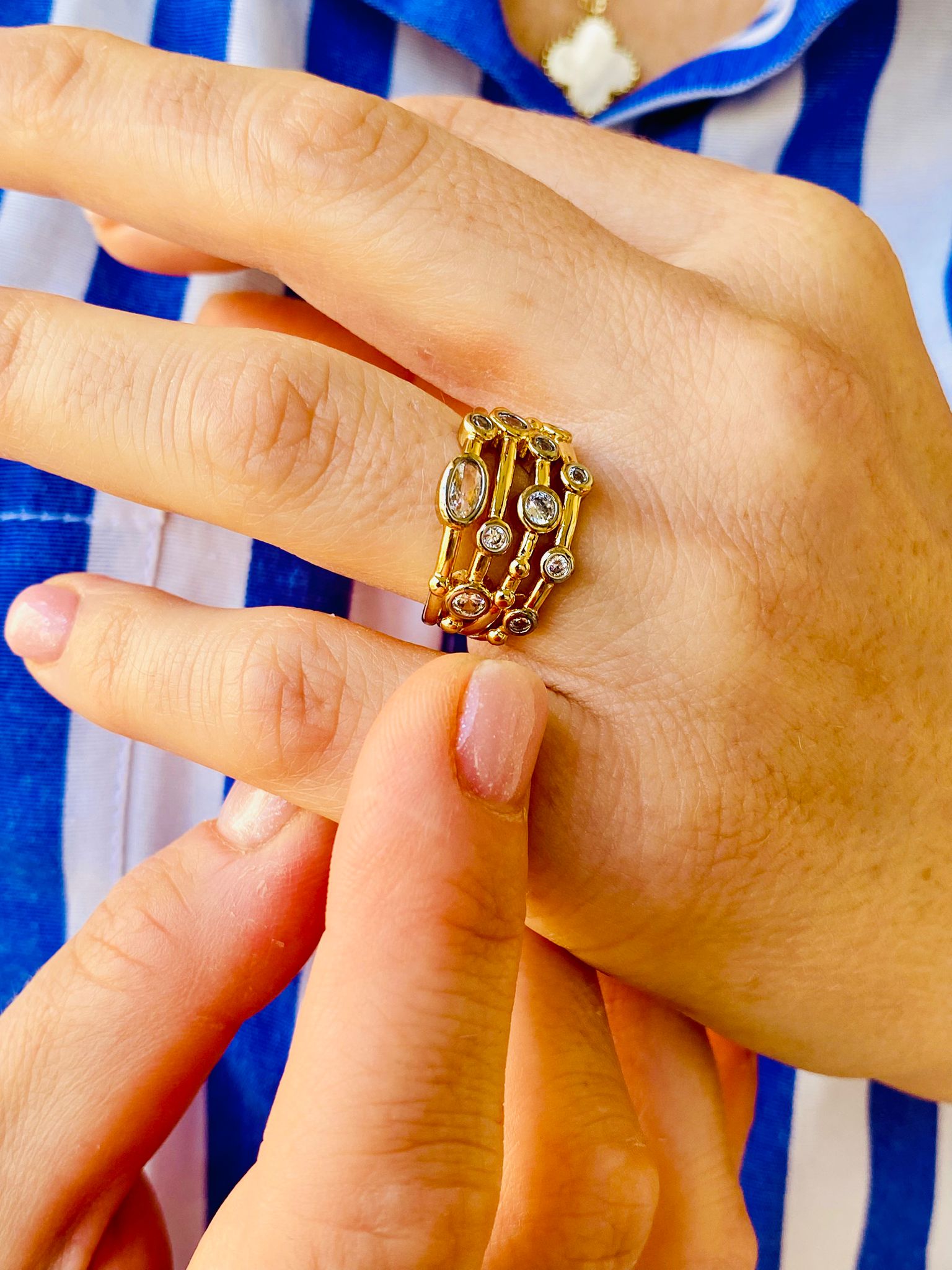 Zirkon Çok Taşlı Gold Renk Ayarlanabilir Tasarım Vintage Yüzük, zarafeti ve şıklığı bir arada sunan etkileyici bir aksesuardır. Her kadının takı koleksiyonunda yer alması gereken bu yüzük, hem kendinize hem de sevdiklerinize hediye edebileceğiniz harika bir seçenektir. Siz de bu eşsiz tasarımı deneyimlemek için hemen sipariş verebilirsiniz!