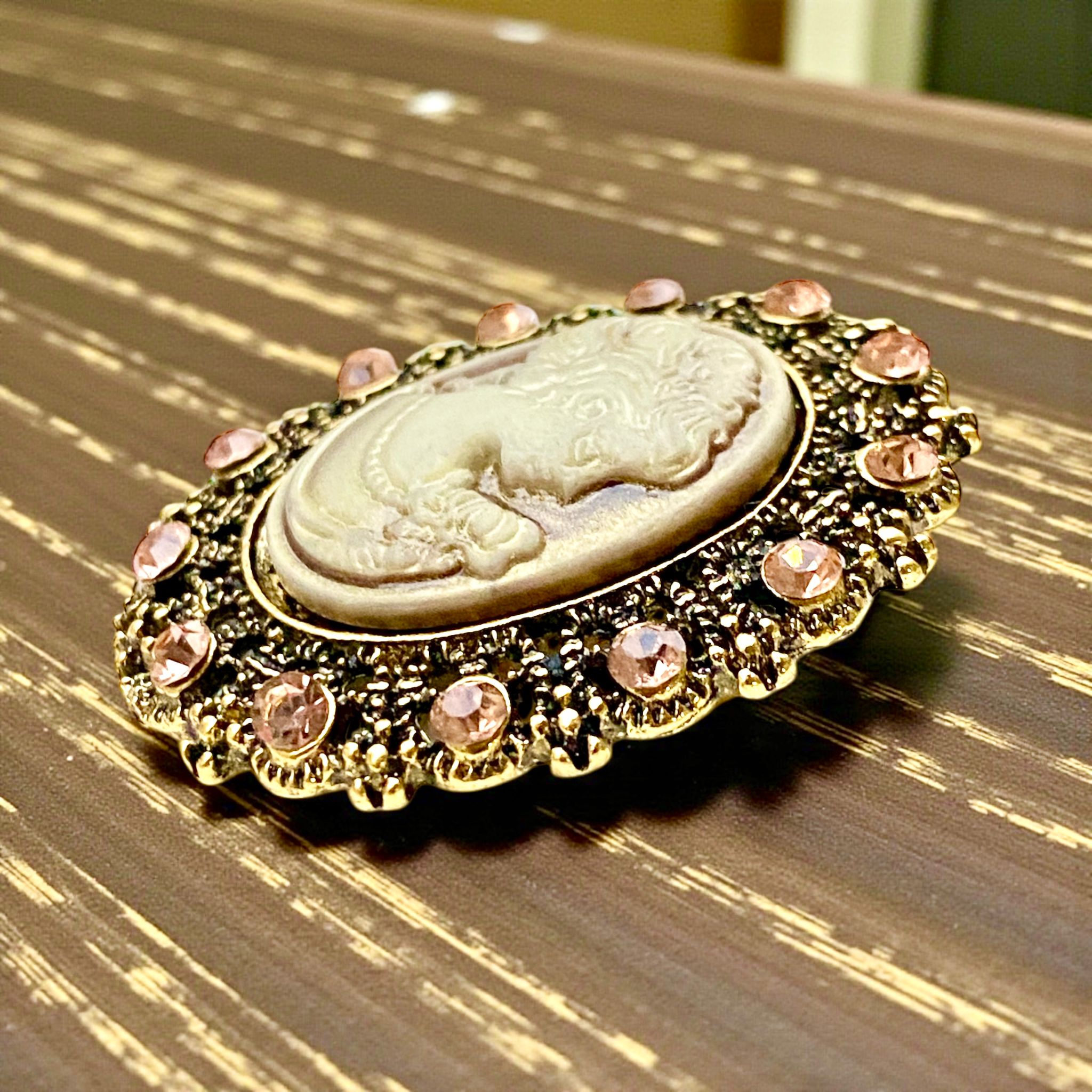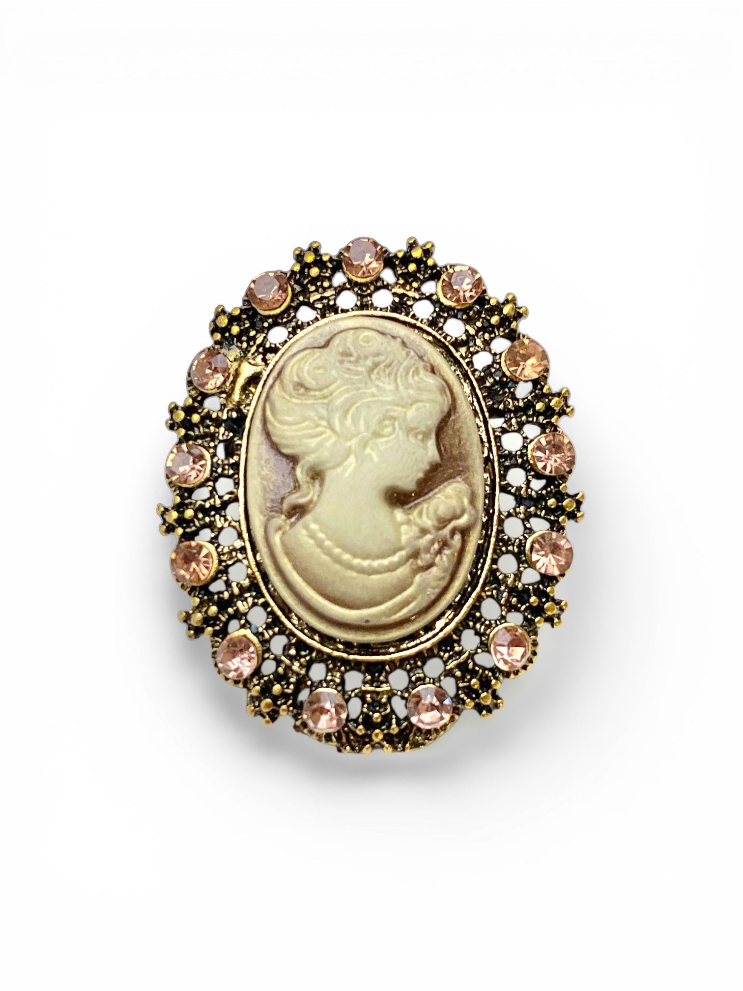 Zirkon Taşlı Altın Renk Vintage Oksideli Tasarım Cameo Kraliçe Broş