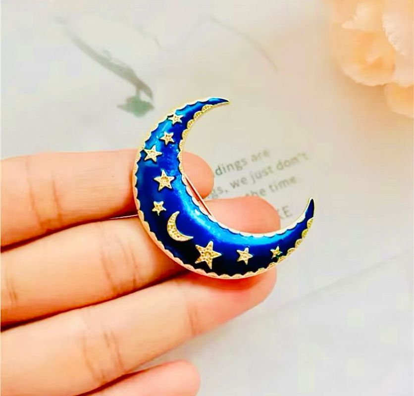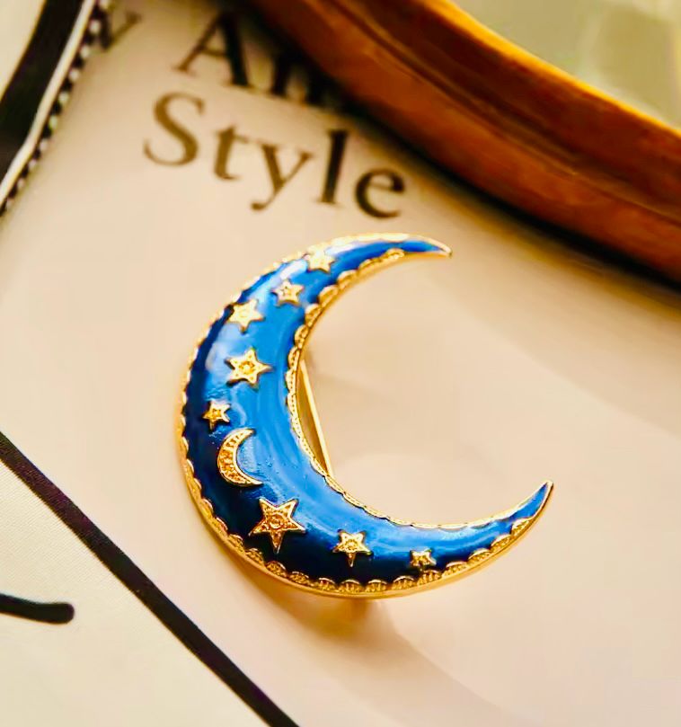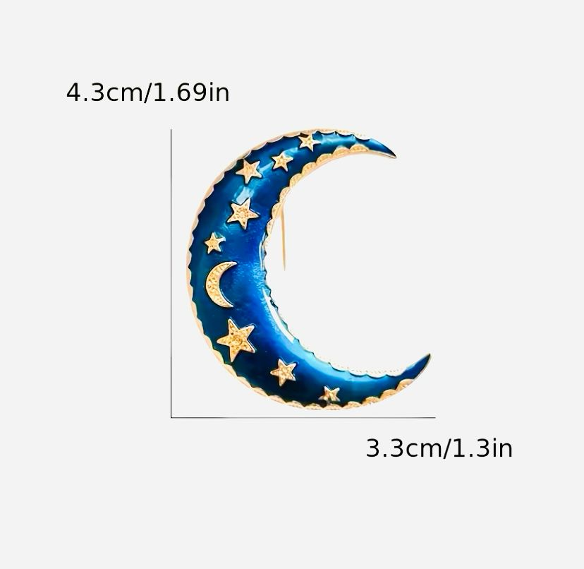Broş, ay ve yıldız motifinin harmanlanmasıyla oluşturulmuş şık bir tasarıma sahiptir. Altın renk tonları, ürünün zarif görünümünü pekiştirirken, zirkon taşların ışıltısı da broşa ayrı bir değer katar. Renkli mineler ise broşun üzerine işlenmiş olup, her bir detayıyla göz alıcı bir görüntü sunmaktadır.